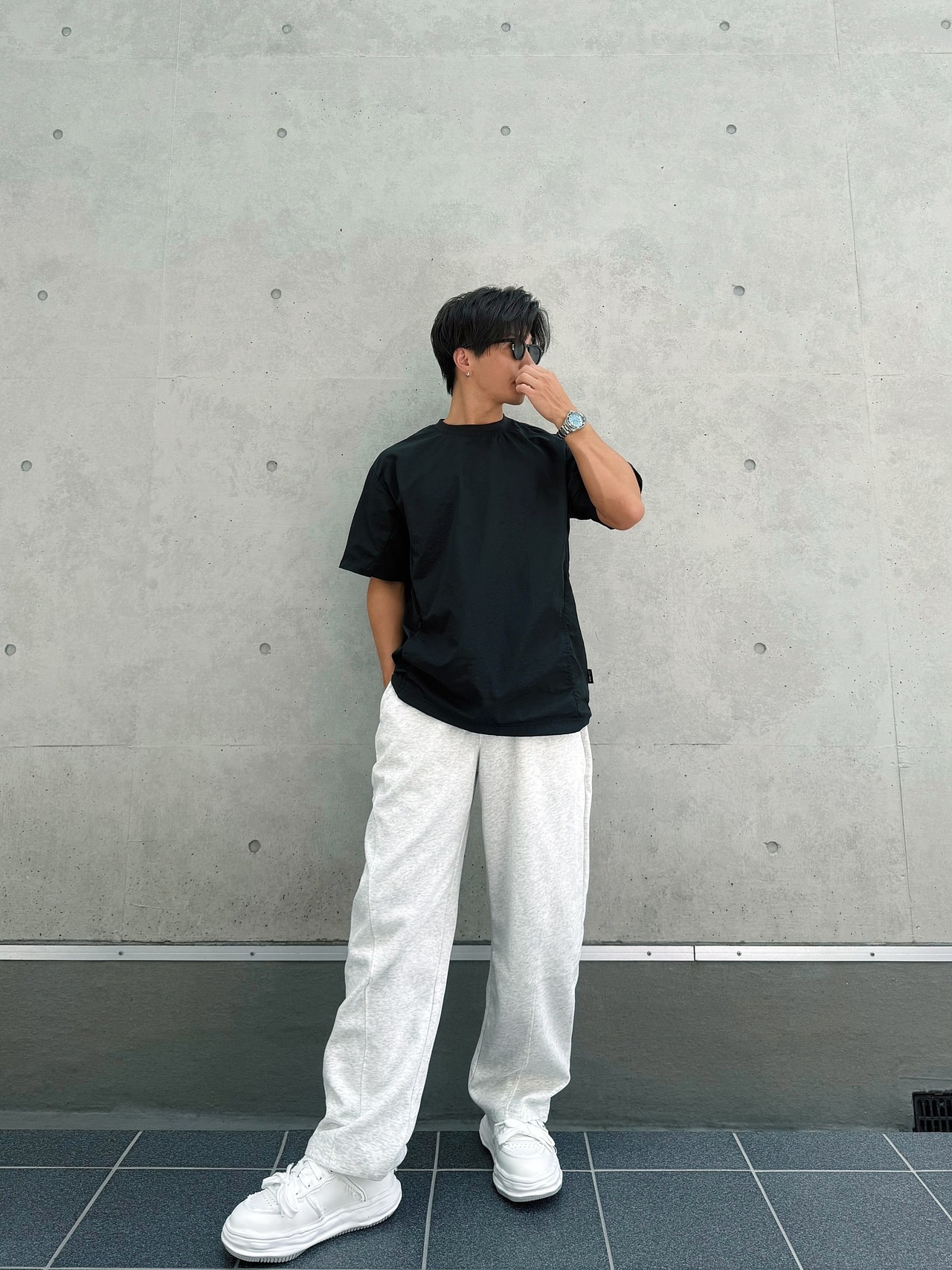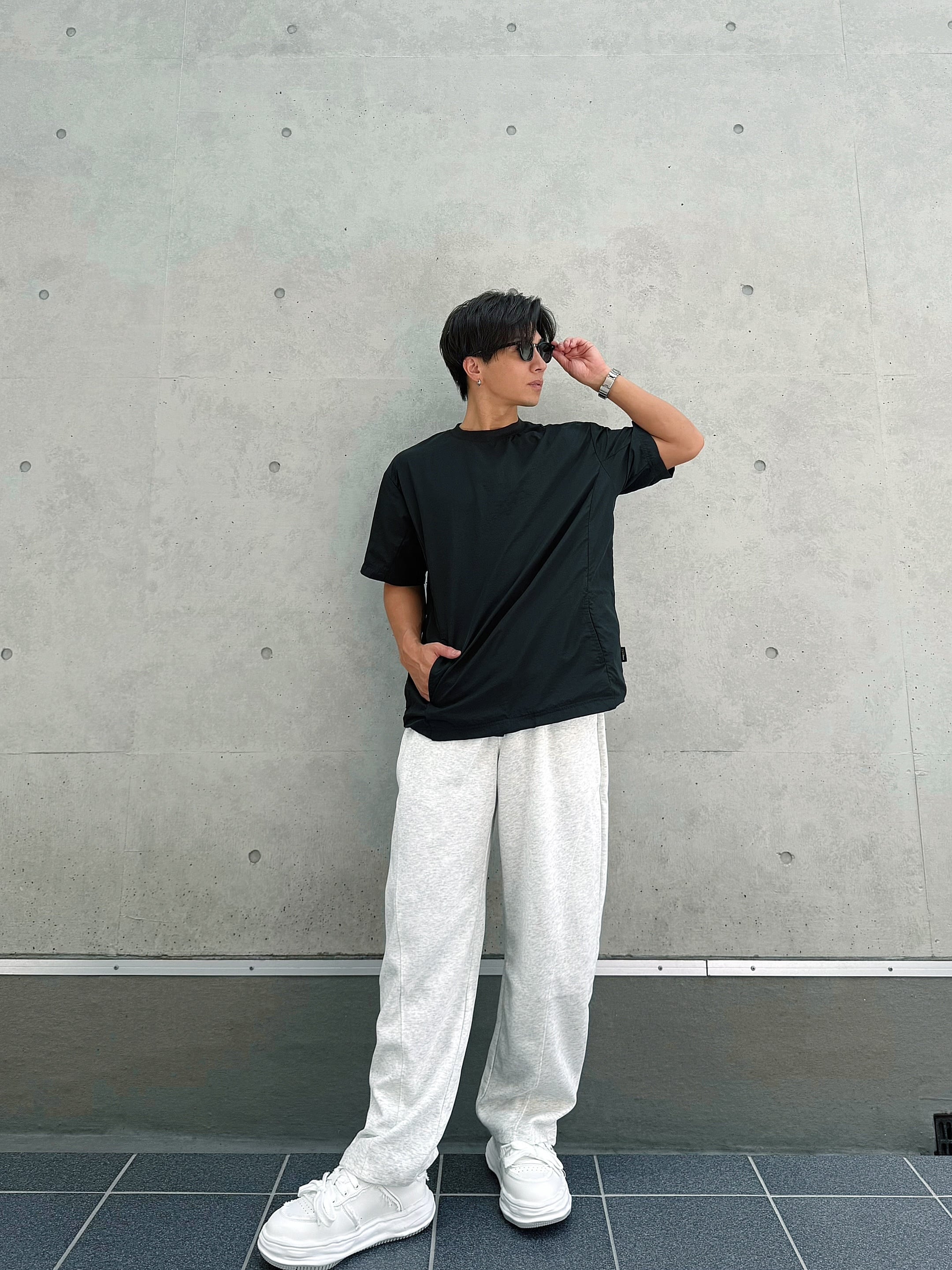 ストンと落ちるようなワイドシルエットが魅力のスウェットパンツ