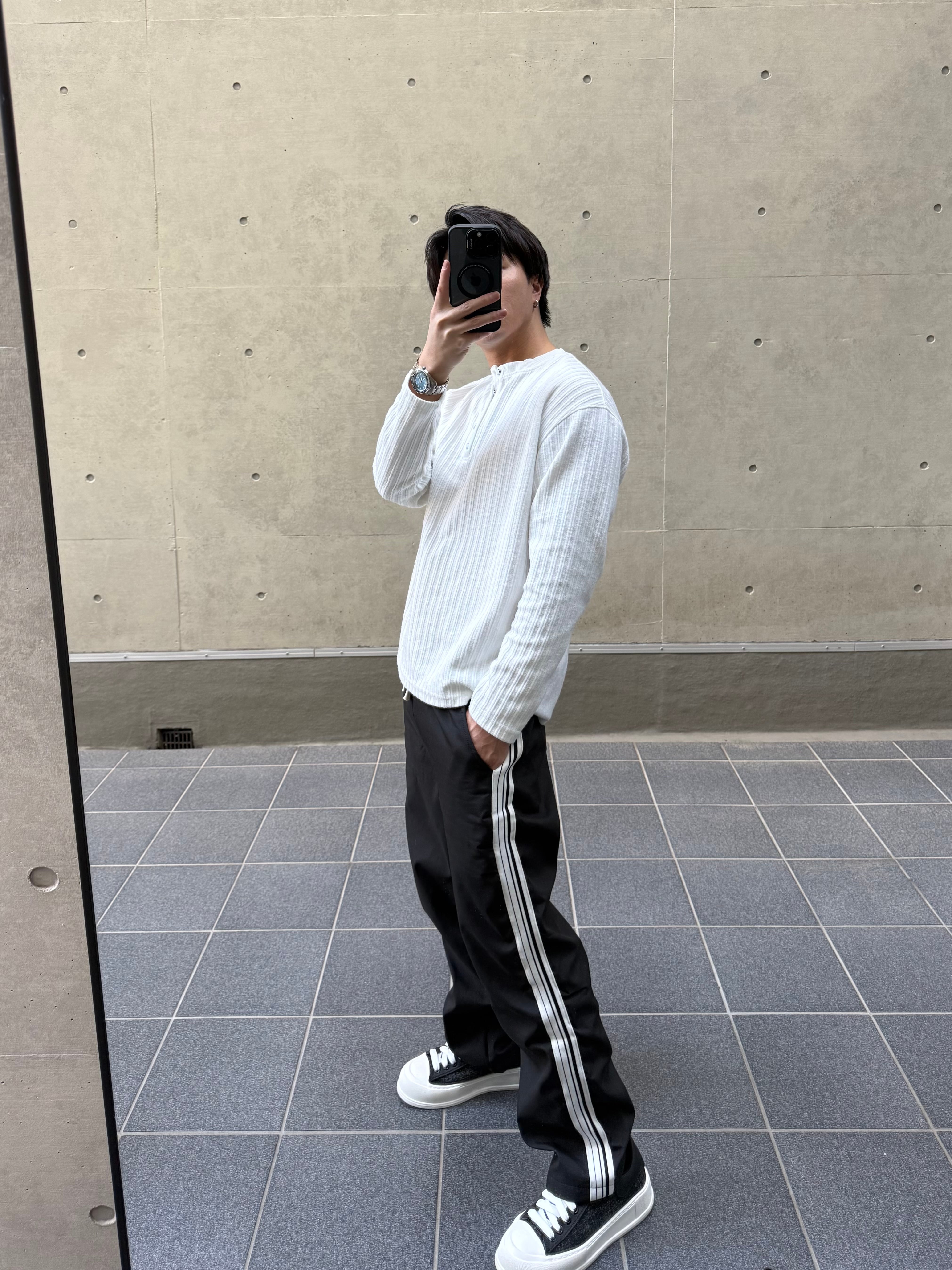 ストンと落ちたリラックスシルエットが特徴のラインパンツ