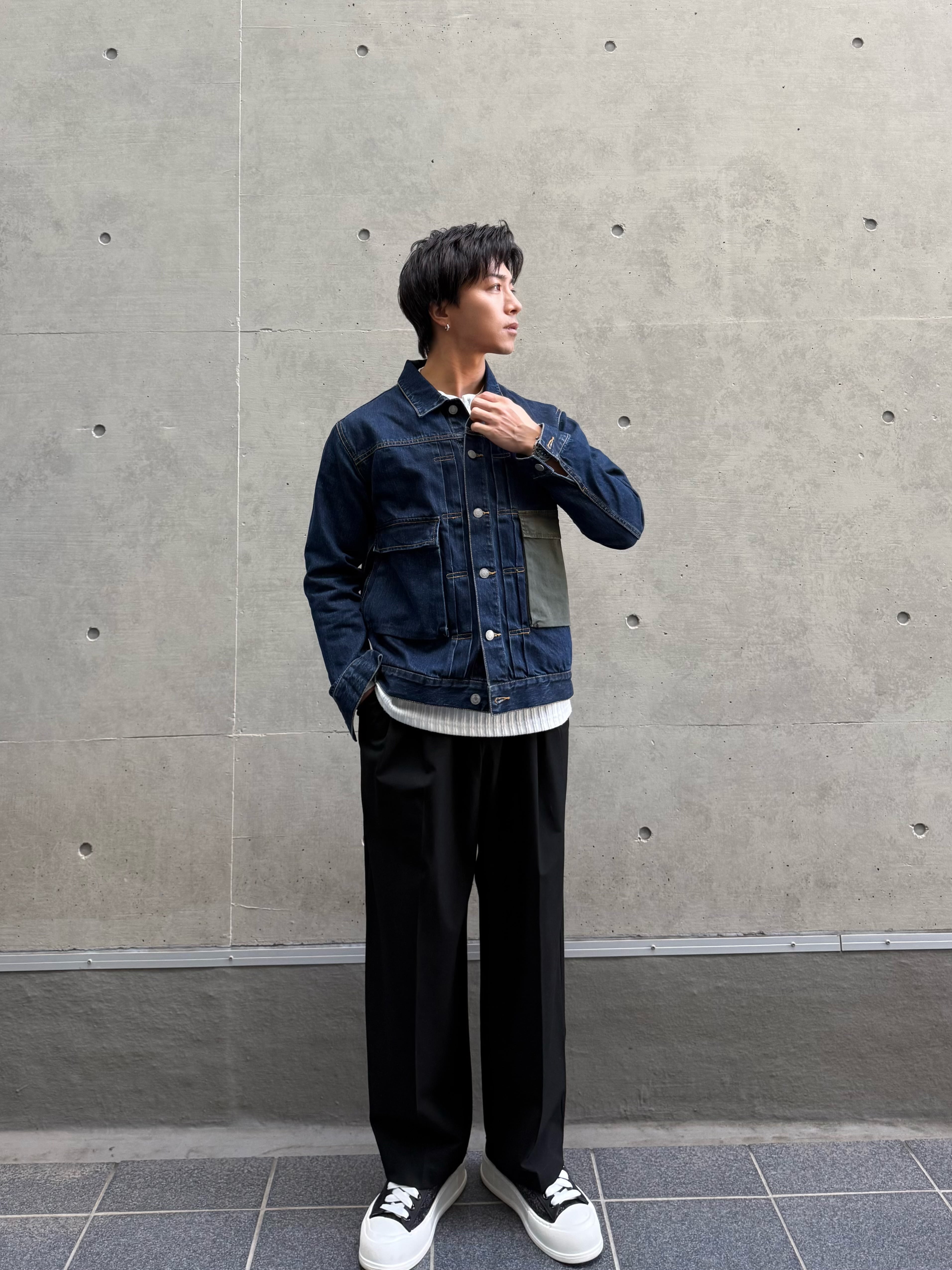 フロントに配置したアーミーポケットがアクセントのデニムジャケット
