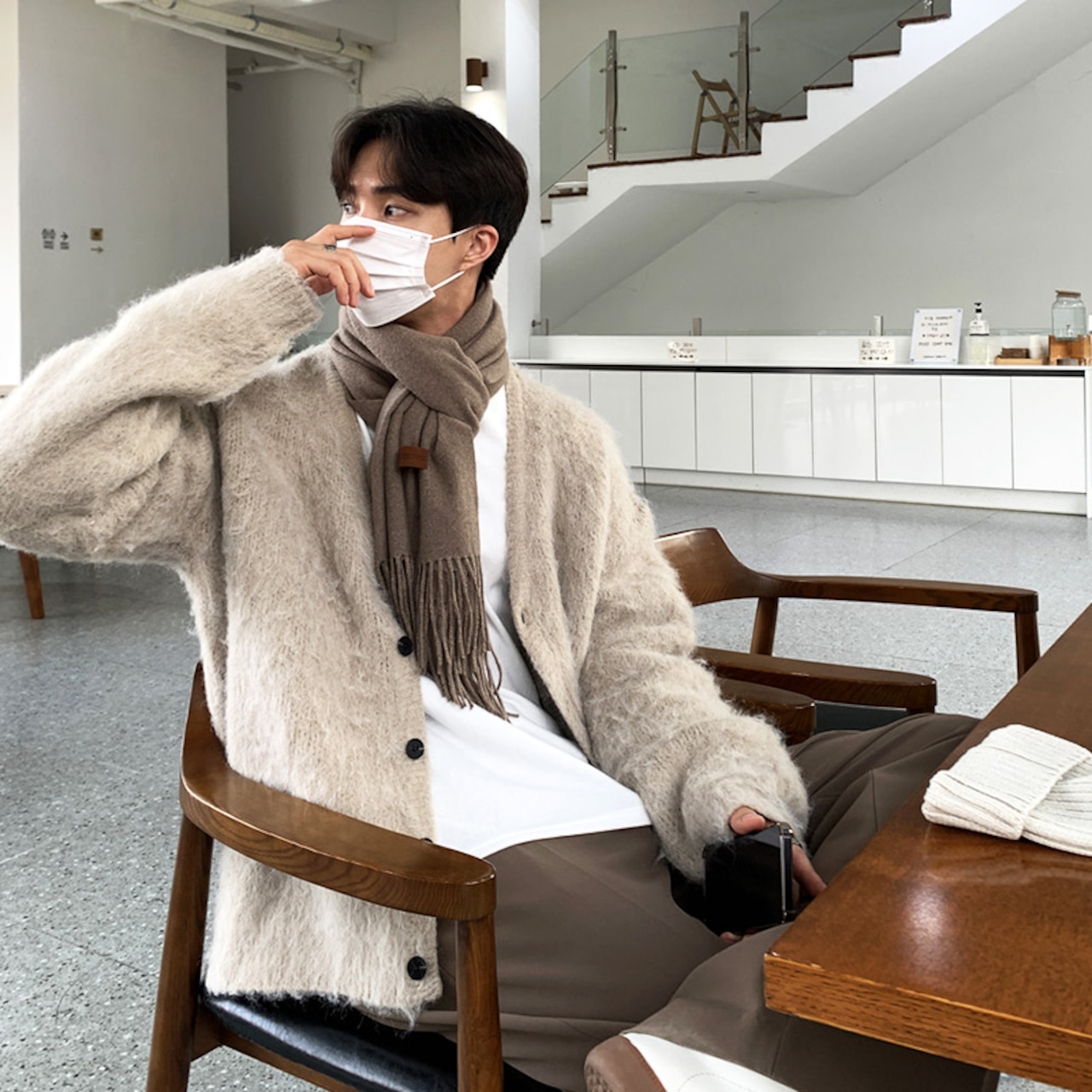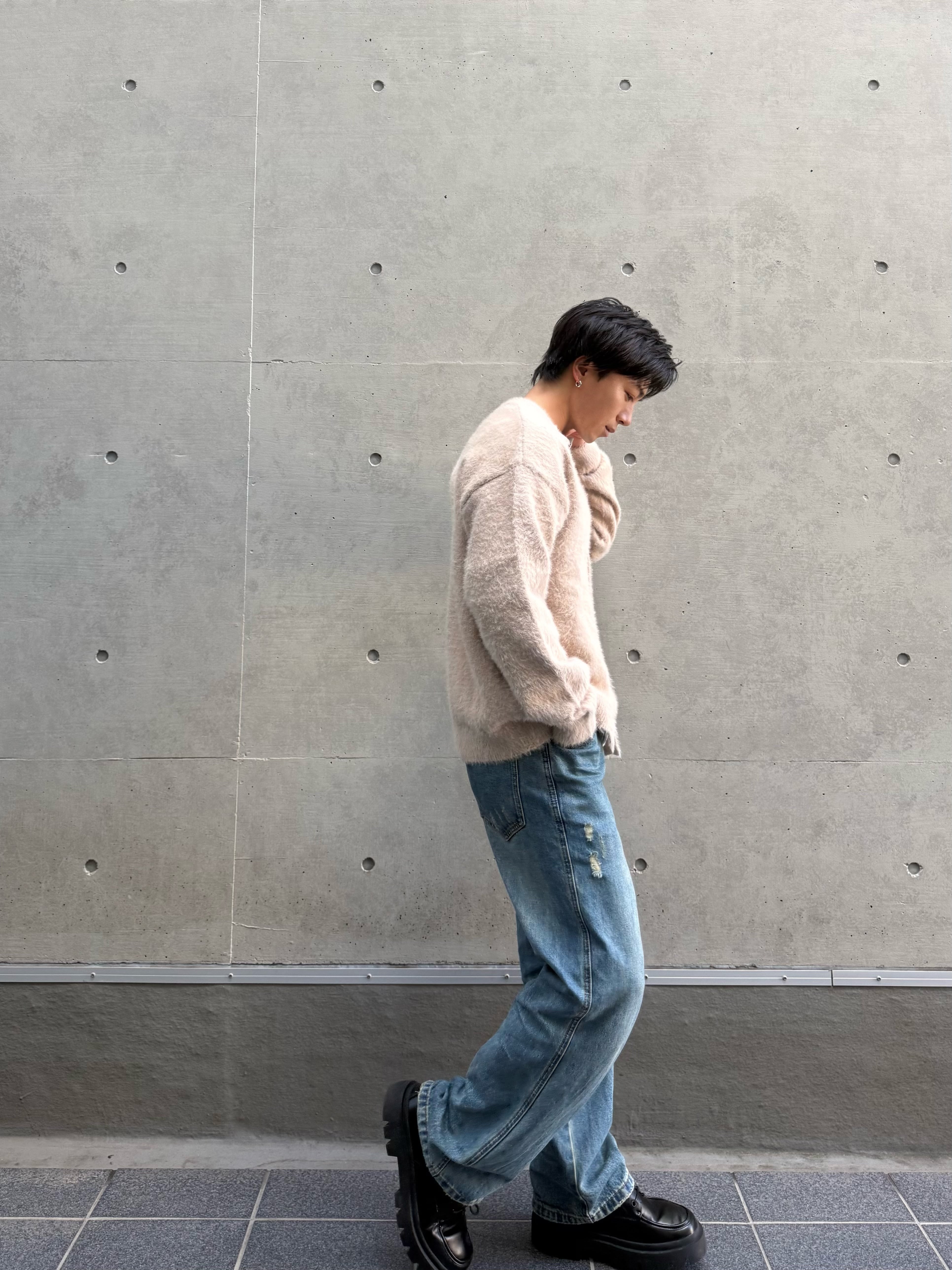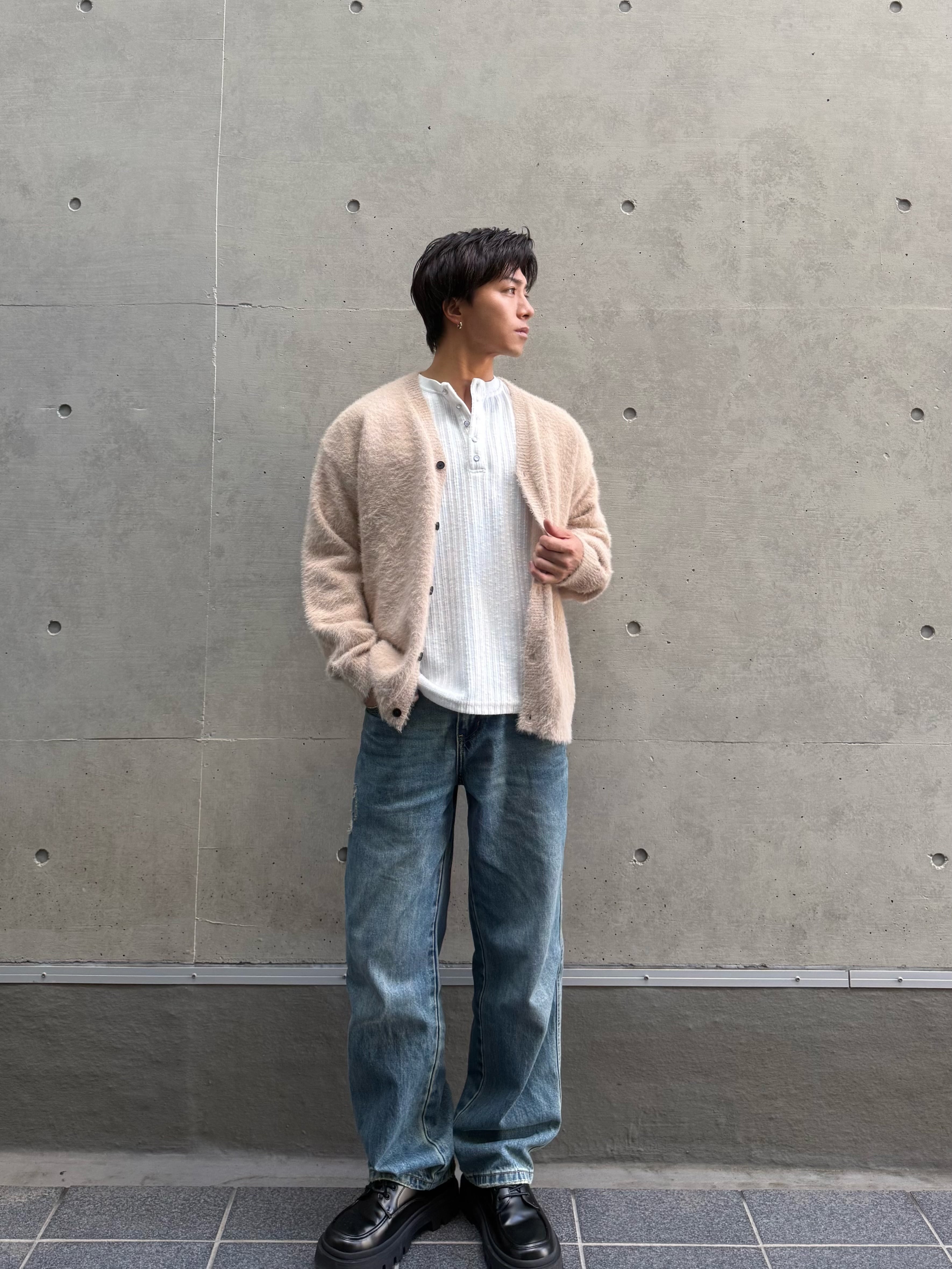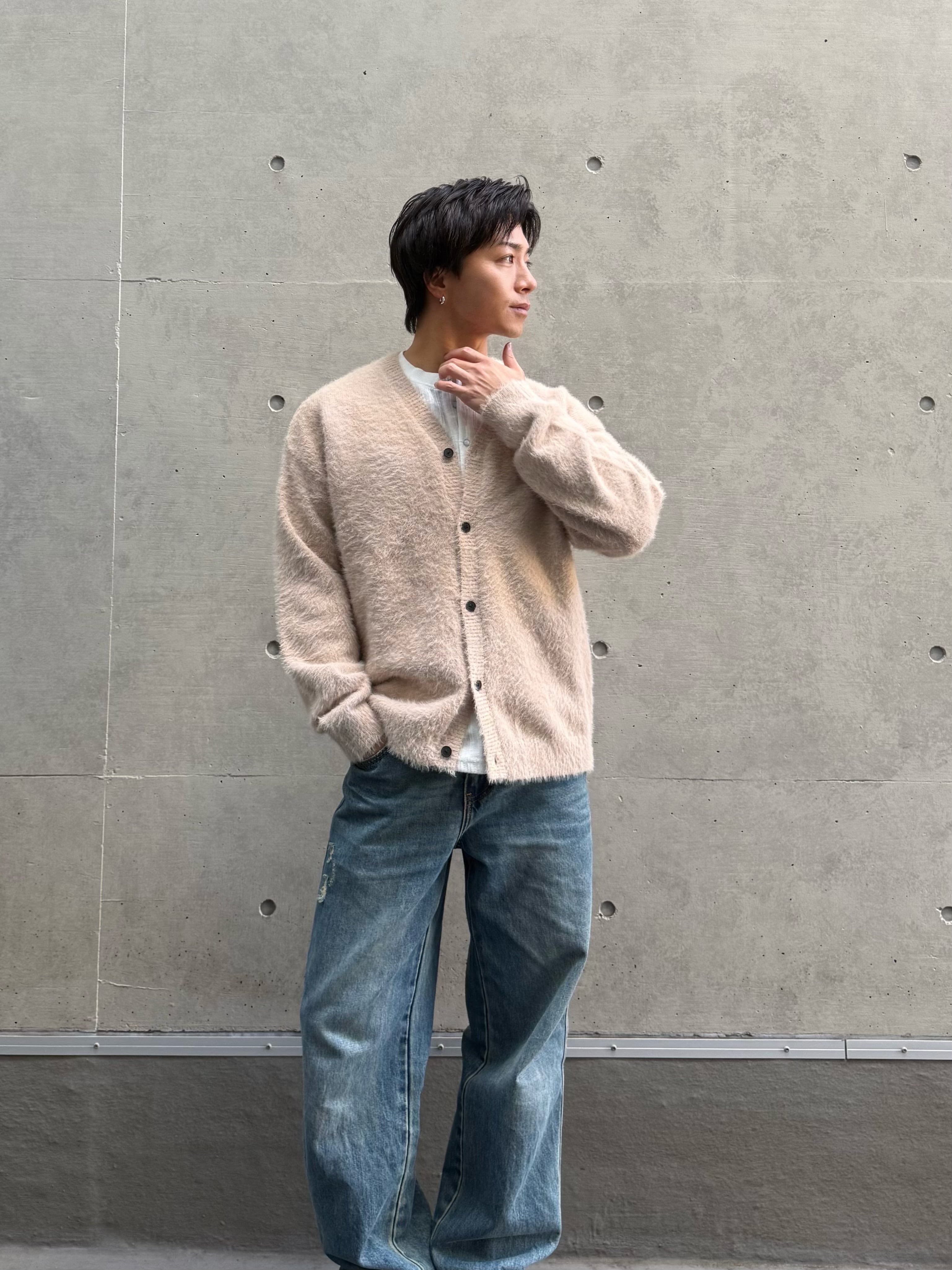 ゆったりとしたシルエットと起毛感のある触り心地が特徴のカーディガン
