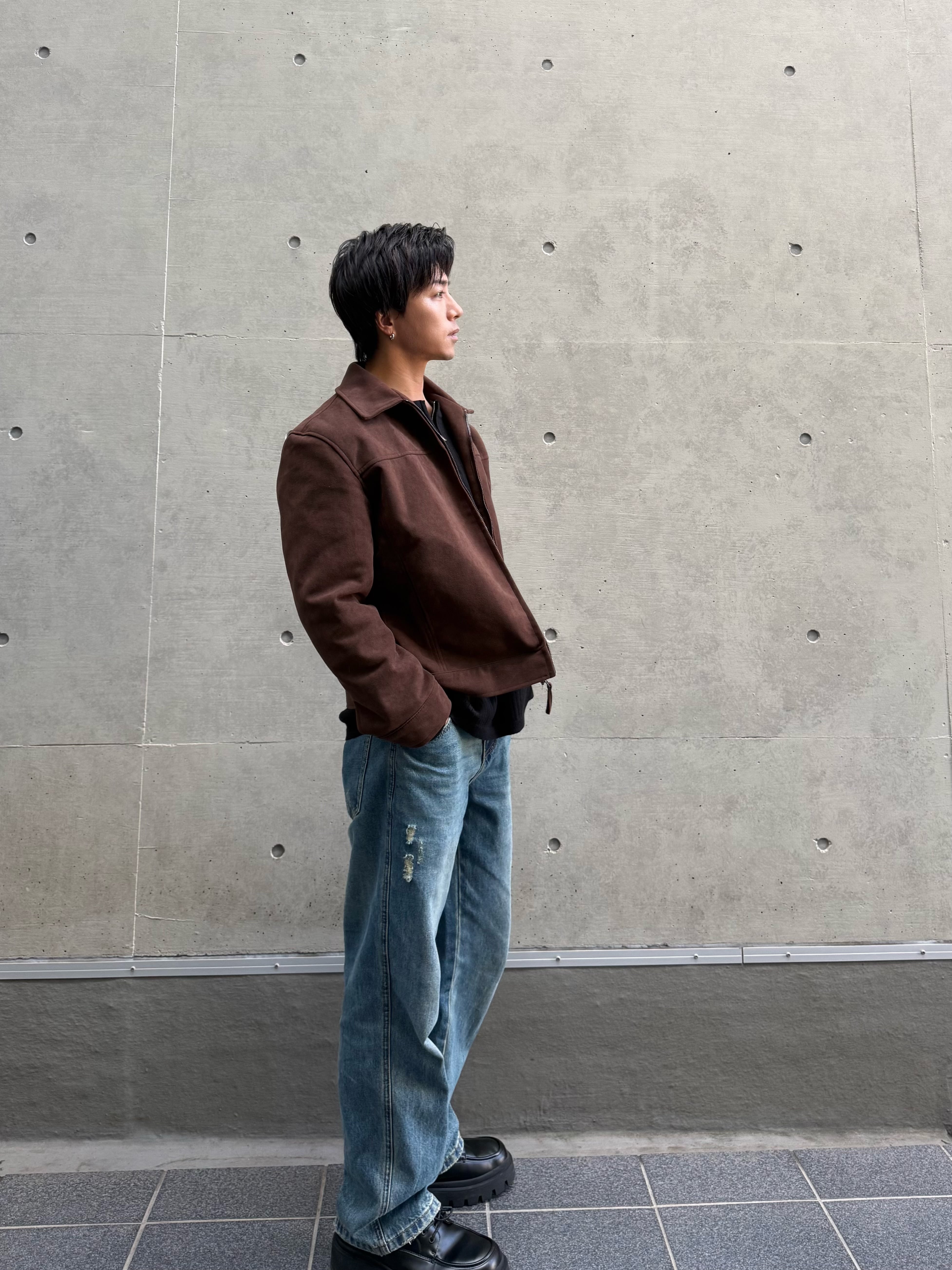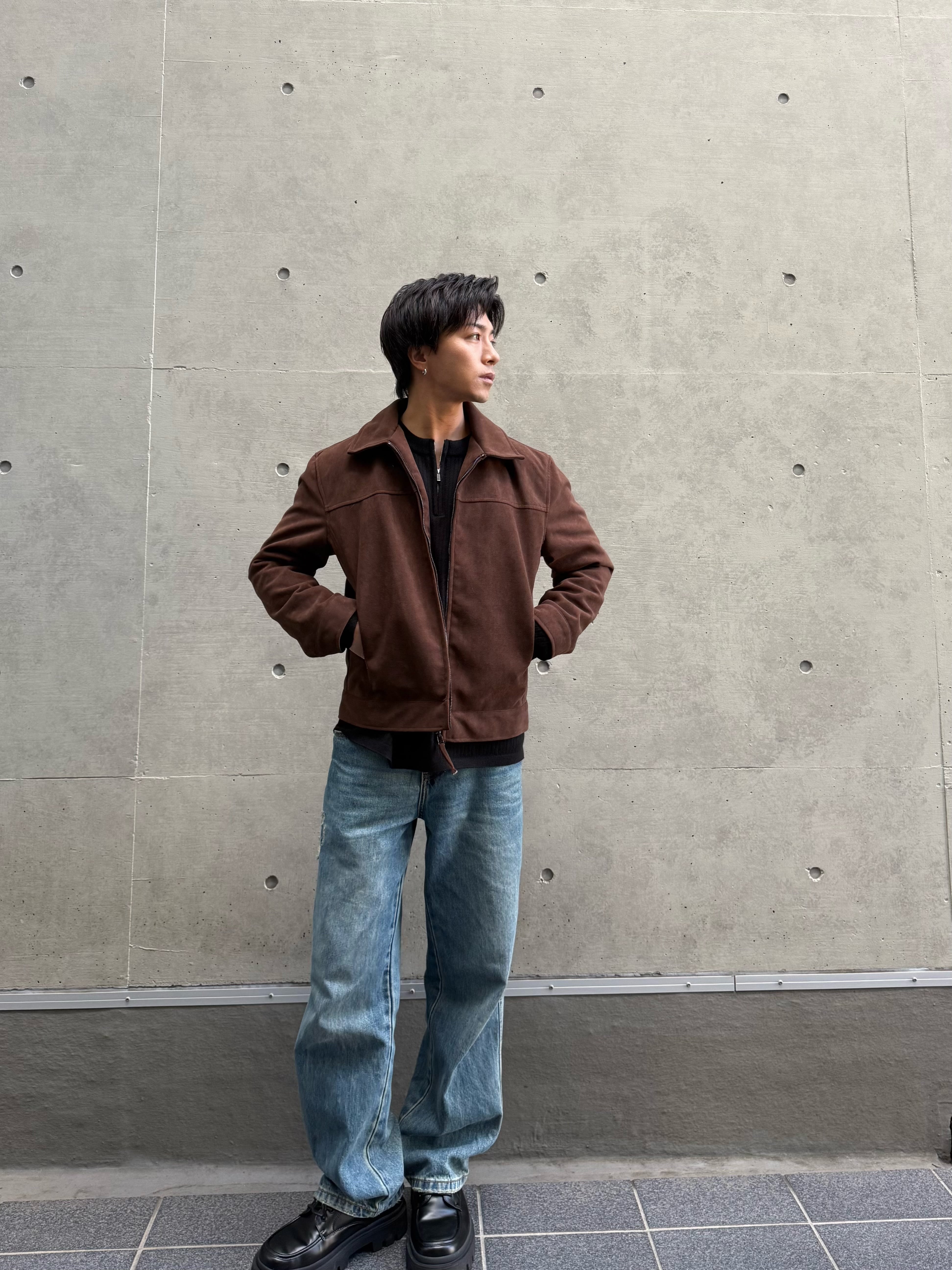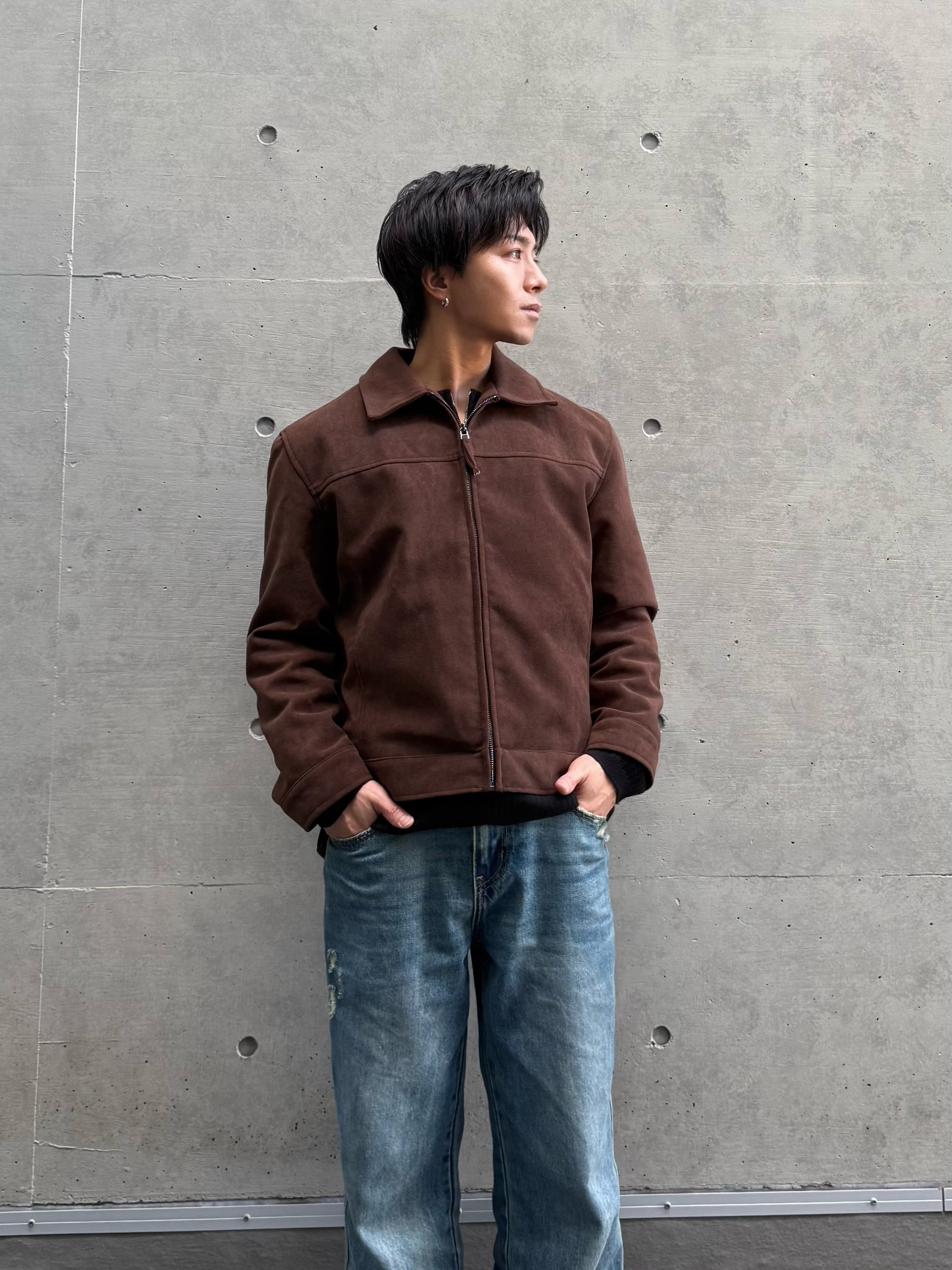 スウェード調の上品な風合いがコーディネートを格上げするジップブルゾン