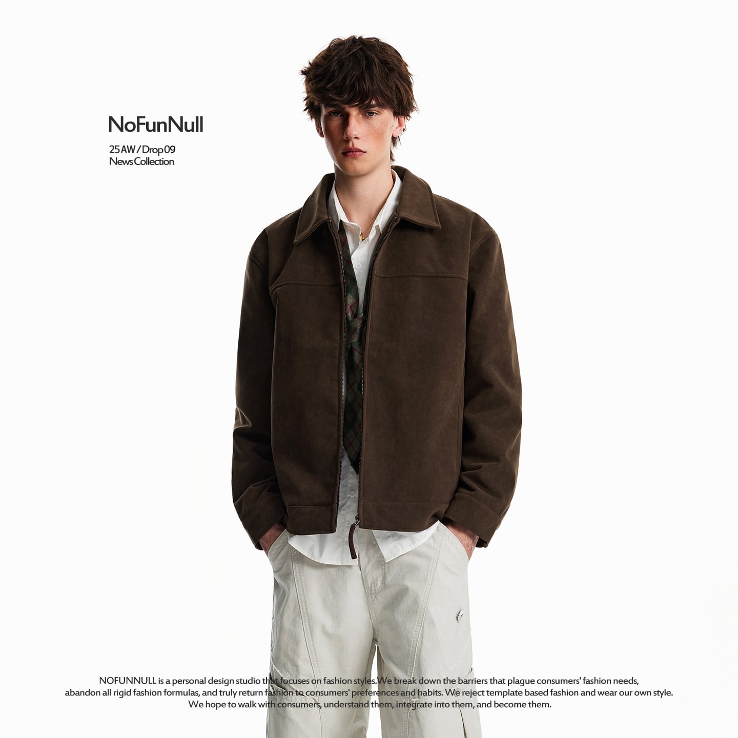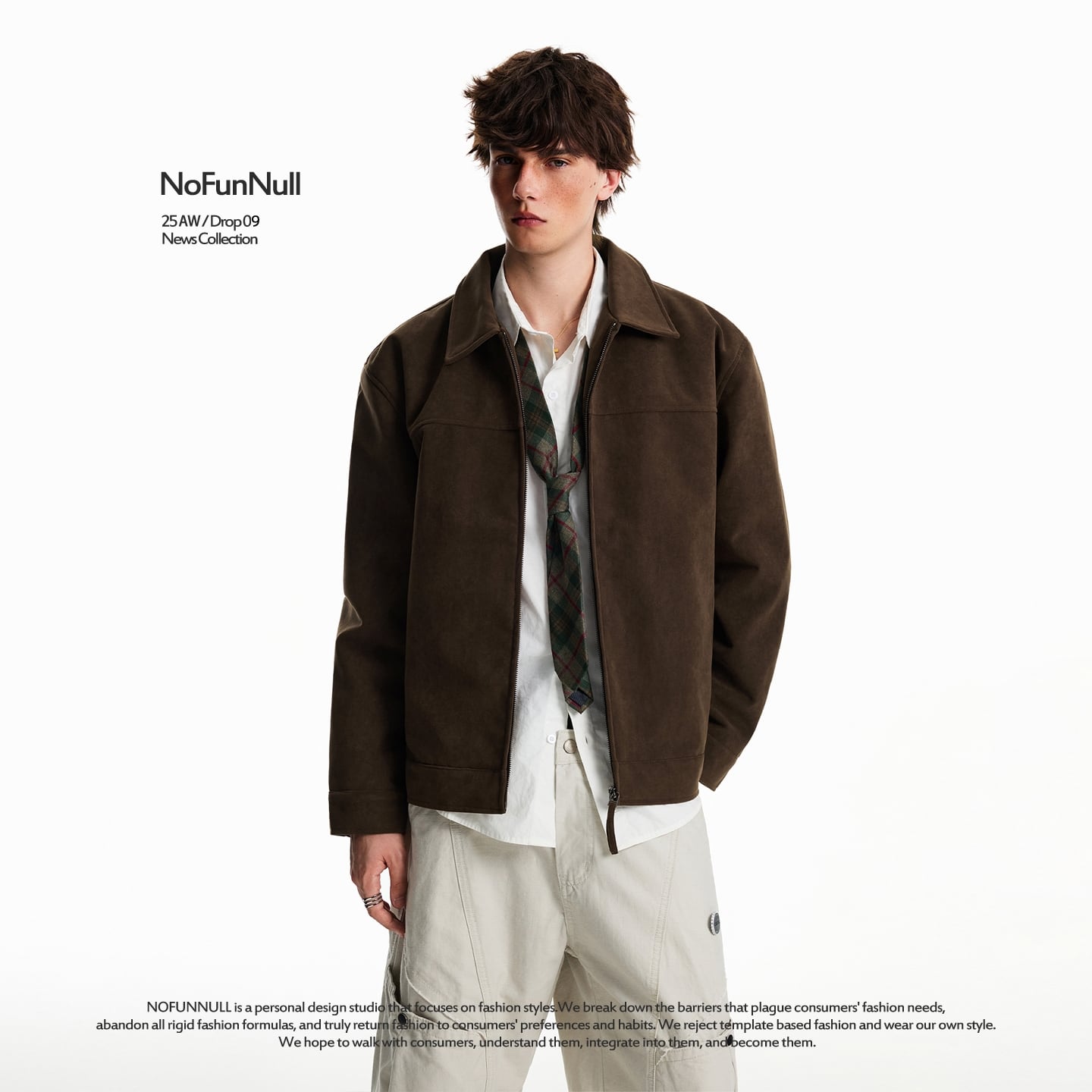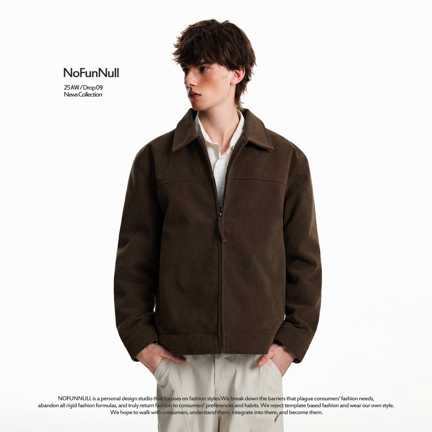 スウェード調の上品な風合いがコーディネートを格上げするジップブルゾン