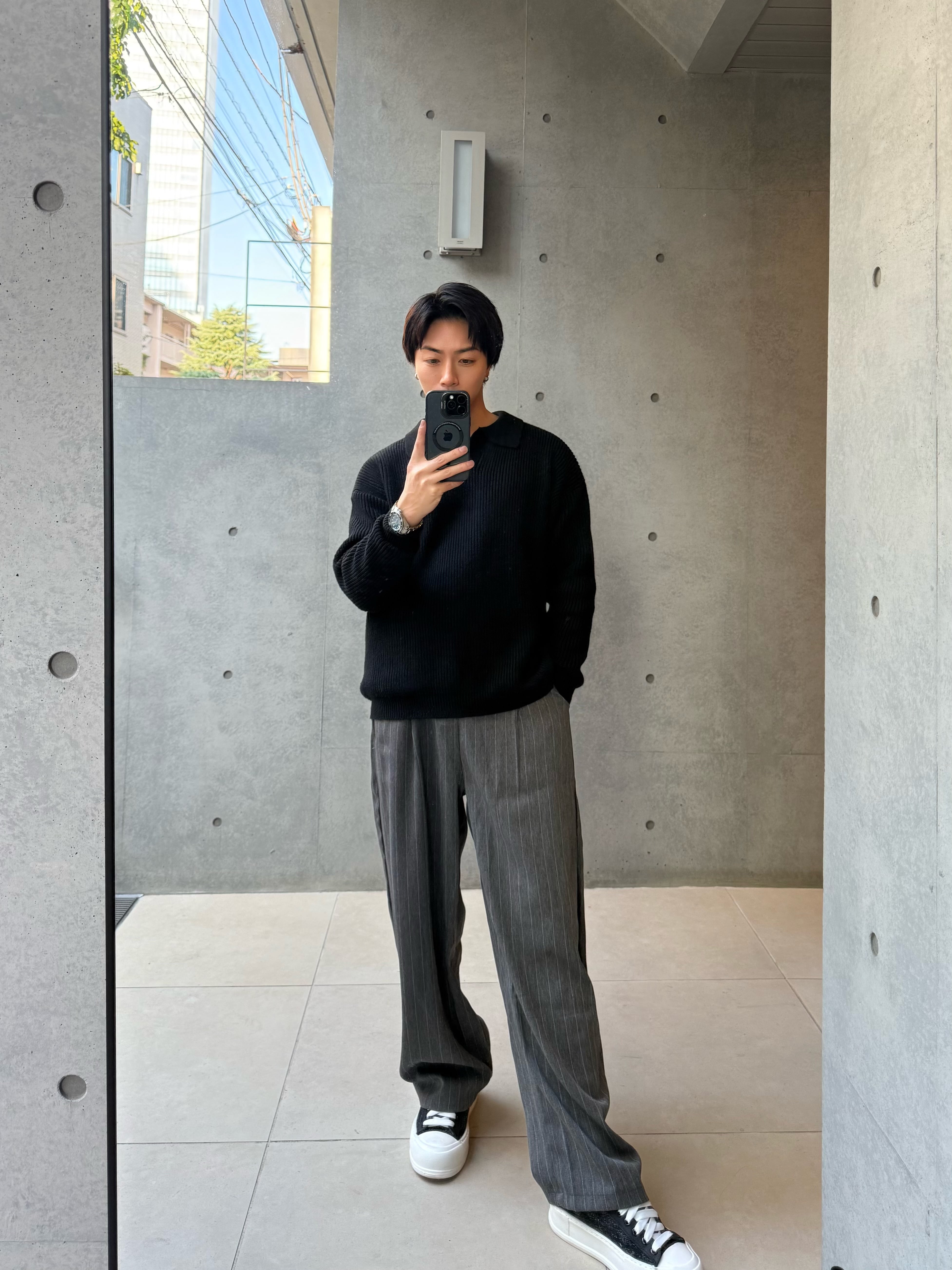 シンプルなコーディネートのアクセントとして通年で使える便利アイテムはタックインで足長効果にも一役買う大人の一本